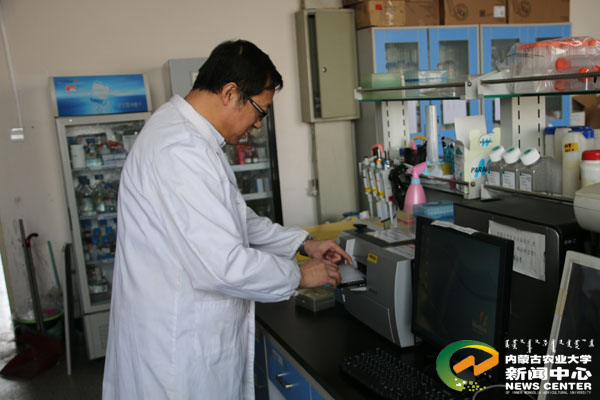 回国后的韩教授作为内蒙古人事厅高级引进人才再次回到农大工作。由于当时工作条件的限制,韩教授来到兽医学院而非直接从事生化工程类的工作。所谓“塞翁失马焉知非福”,韩教授说,正是来到兽医学院,才让他在应用研究上有了发展机会。2010年前的几年里,国家一直在寻找口蹄疫疫苗质量检测技术,韩教授那股敢于拼搏敢于冒险的精神劲儿让他这位从未接触过疫苗的“门外汉”挺身而出,担下了技术检验这一重任。