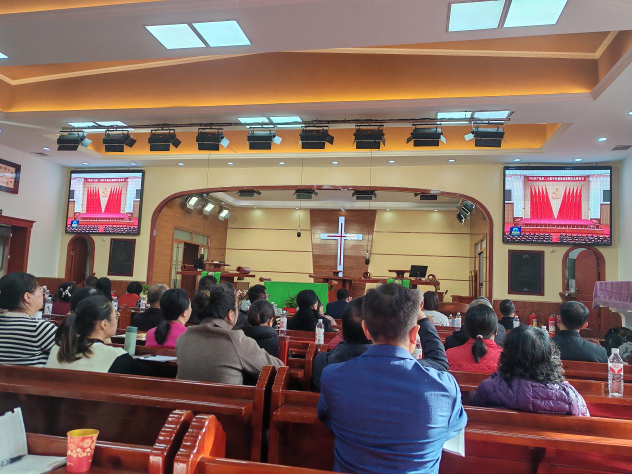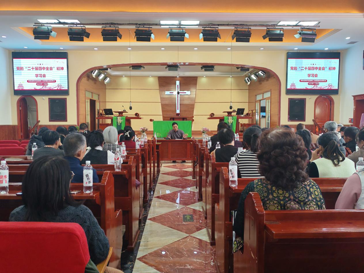 11月8日,呼和浩特市基督教界深入传达学习党的二十届四中全会精神学习活动在回民区海拉尔西路基督教堂举行。市基督教三自爱国运动委员会班子成员、监事、各旗(县、区)中心教堂负责人、教职人员六十余人参加了本次学习。学习活动由副主席、秘书长王海涛牧师主持,分三个部分进行:第一部分是集中收看党的二十届四中全会新闻视频;第二部分是择要领学党的二十届四中全会《公报》;第三部分是学习交流发言。